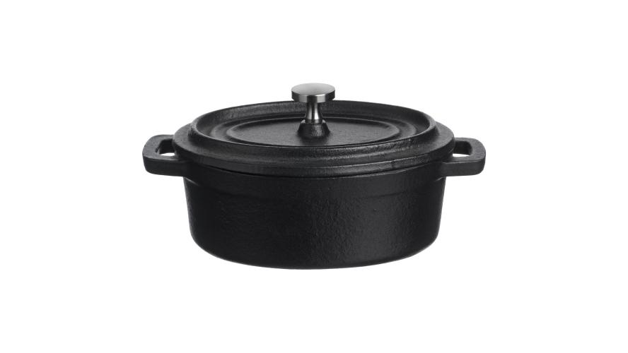 Кастрюля для запекания и подачи 250 мл. 125*90 мм. h=70 мм. с крышкой, черная, чугун /1/