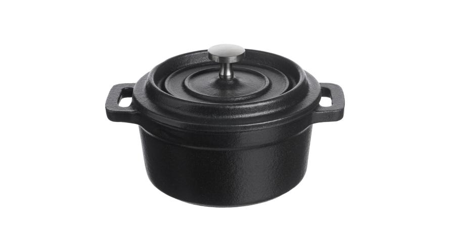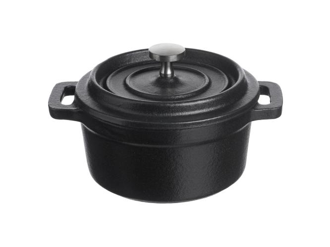 Кастрюля для запекания и подачи 250 мл. d=100 мм. h=70 мм. с крышкой, черная, чугун /1/