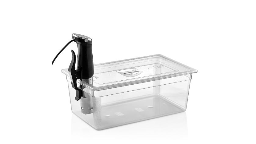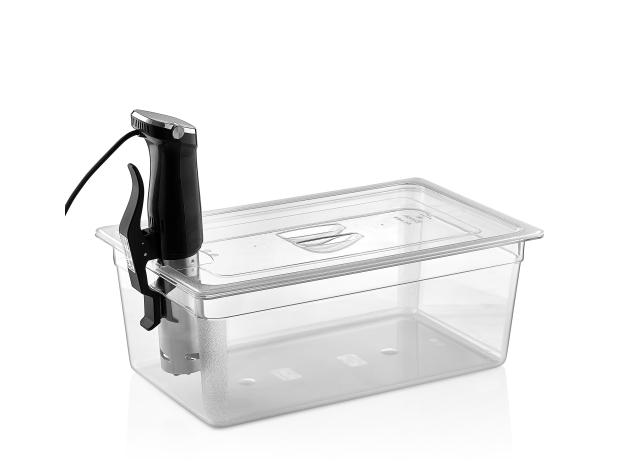 Крышка с вырезом для су-вид GN 1/1 (530*325 мм) из поликарбоната обладает устойчивостью к ударам и перепадам температур от -40 до +100°c. Предназначена для накрывания гастроемкостей при использовании Sous-Vide (Су-Вид) аппаратов (погружной термостат). Удобная ручка обеспечивает надежный хват. Подходит для мытья в посудомоечной машине.