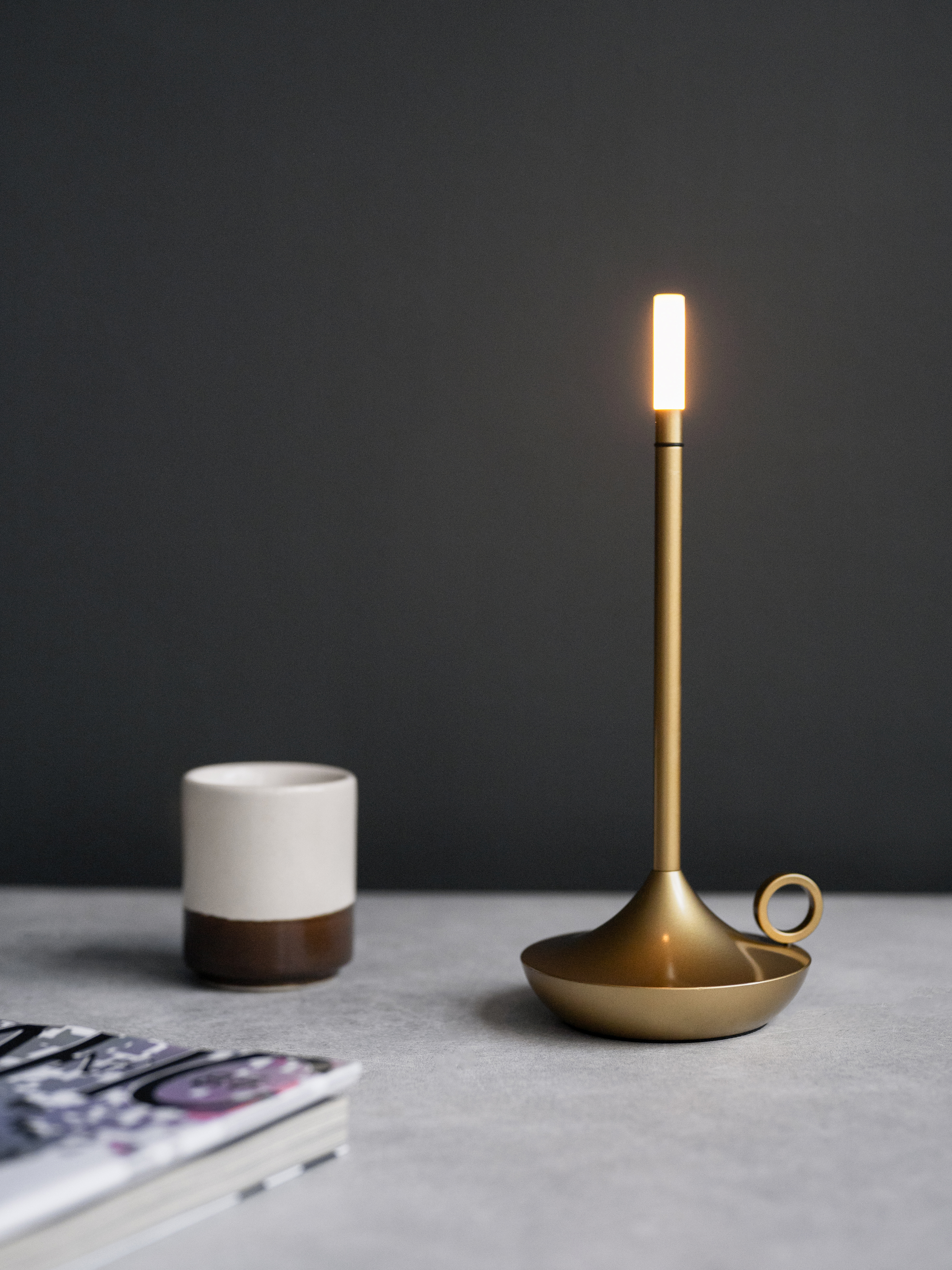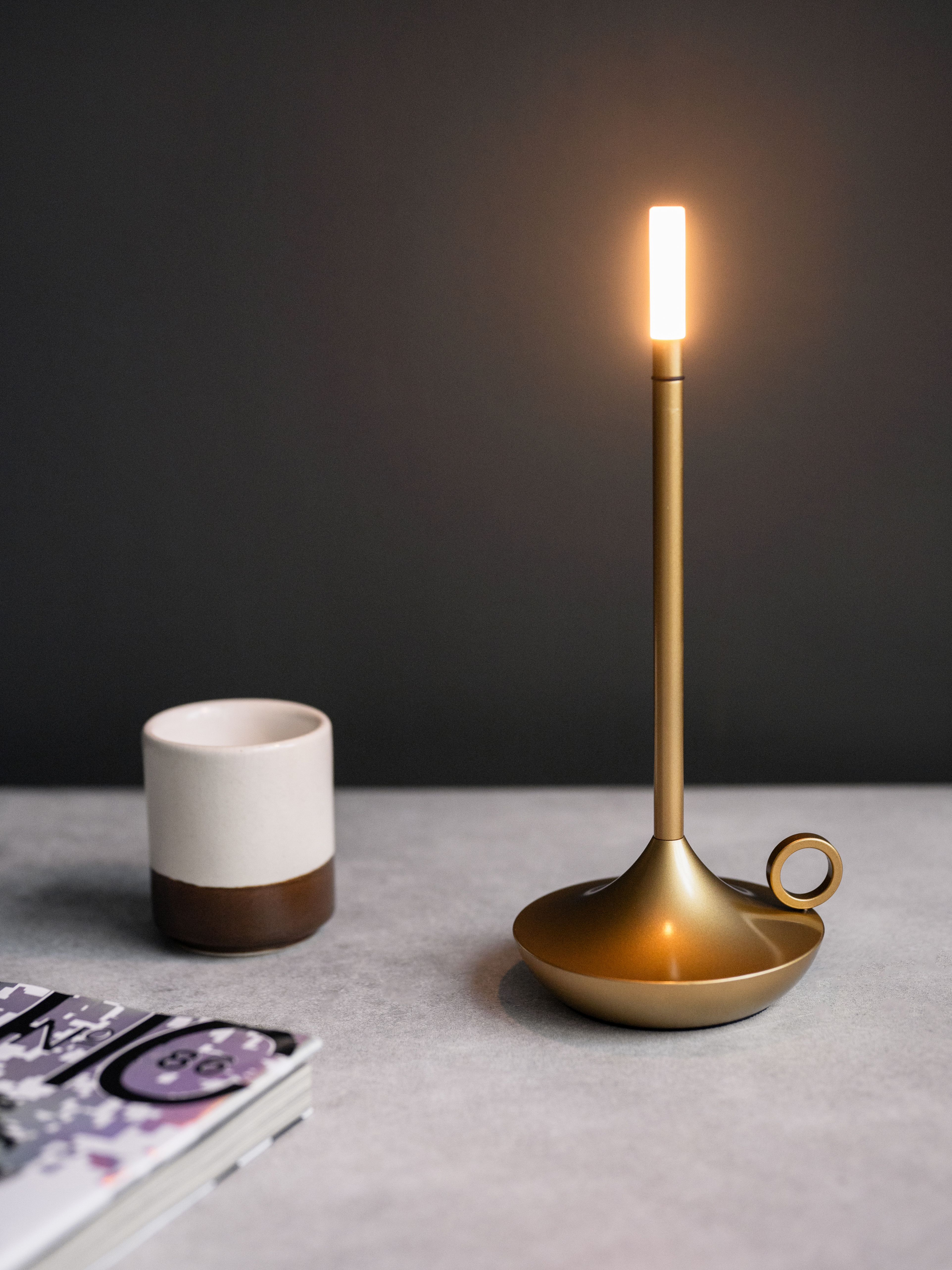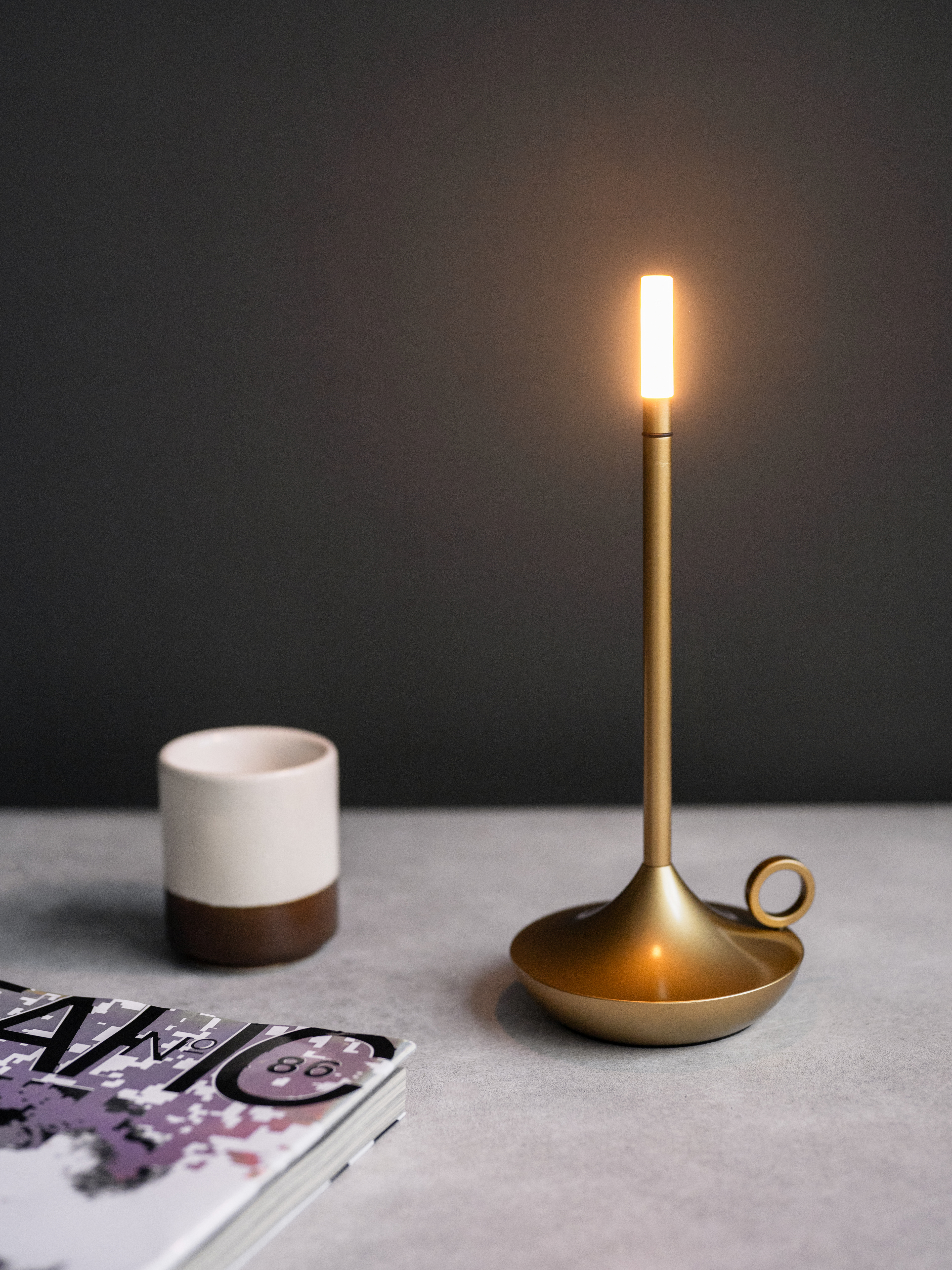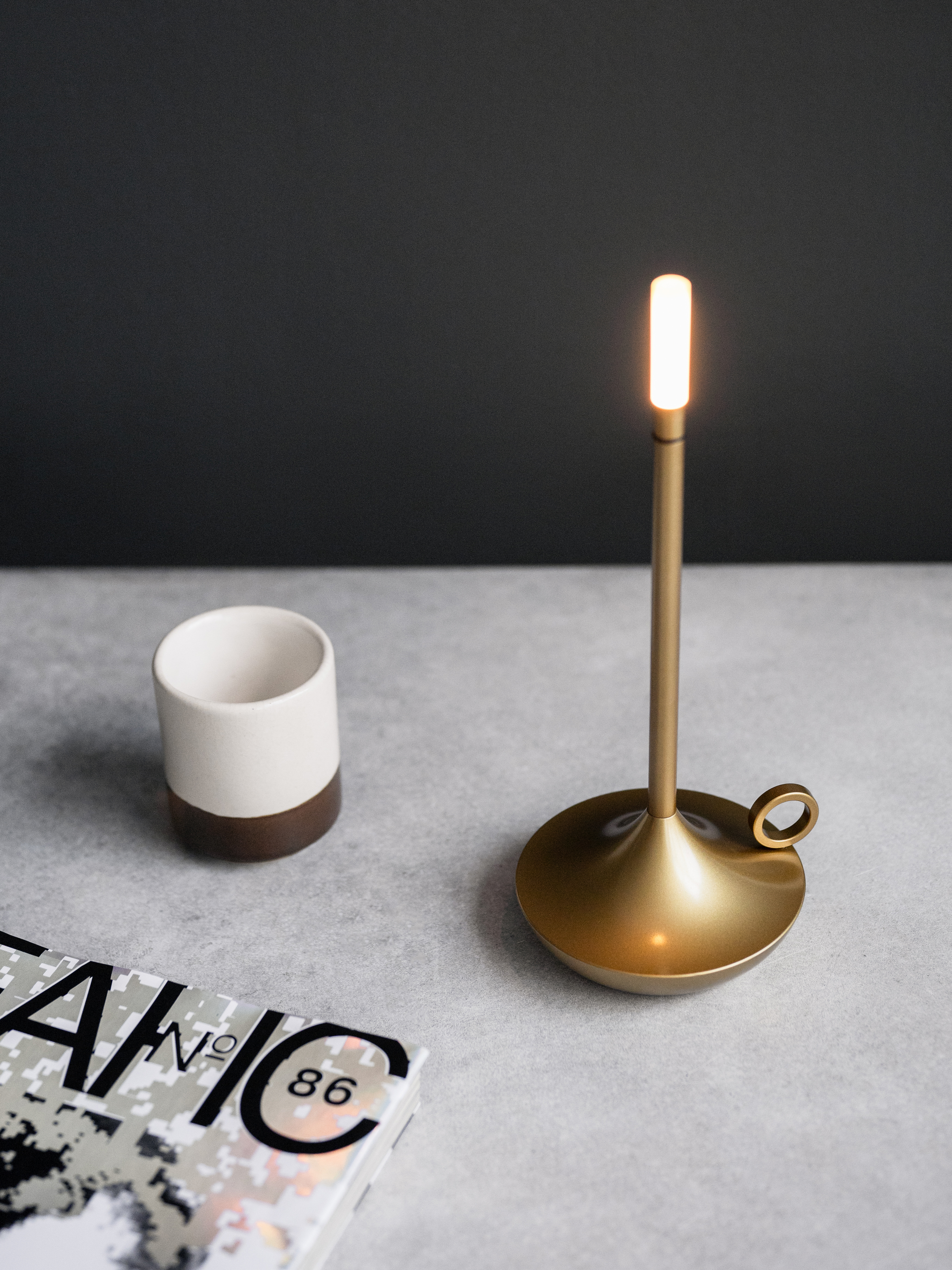 Выполнен из высококачественных материалов, таких как алюминий, что обеспечивает прочность и долговечность изделия. Работает от аккумулятора. Сенсорное управление настольной лампы с 3 уровнями яркости (в т.ч. с имитацией горения свечи) позволяет легко менять яркость свечения лампы.
