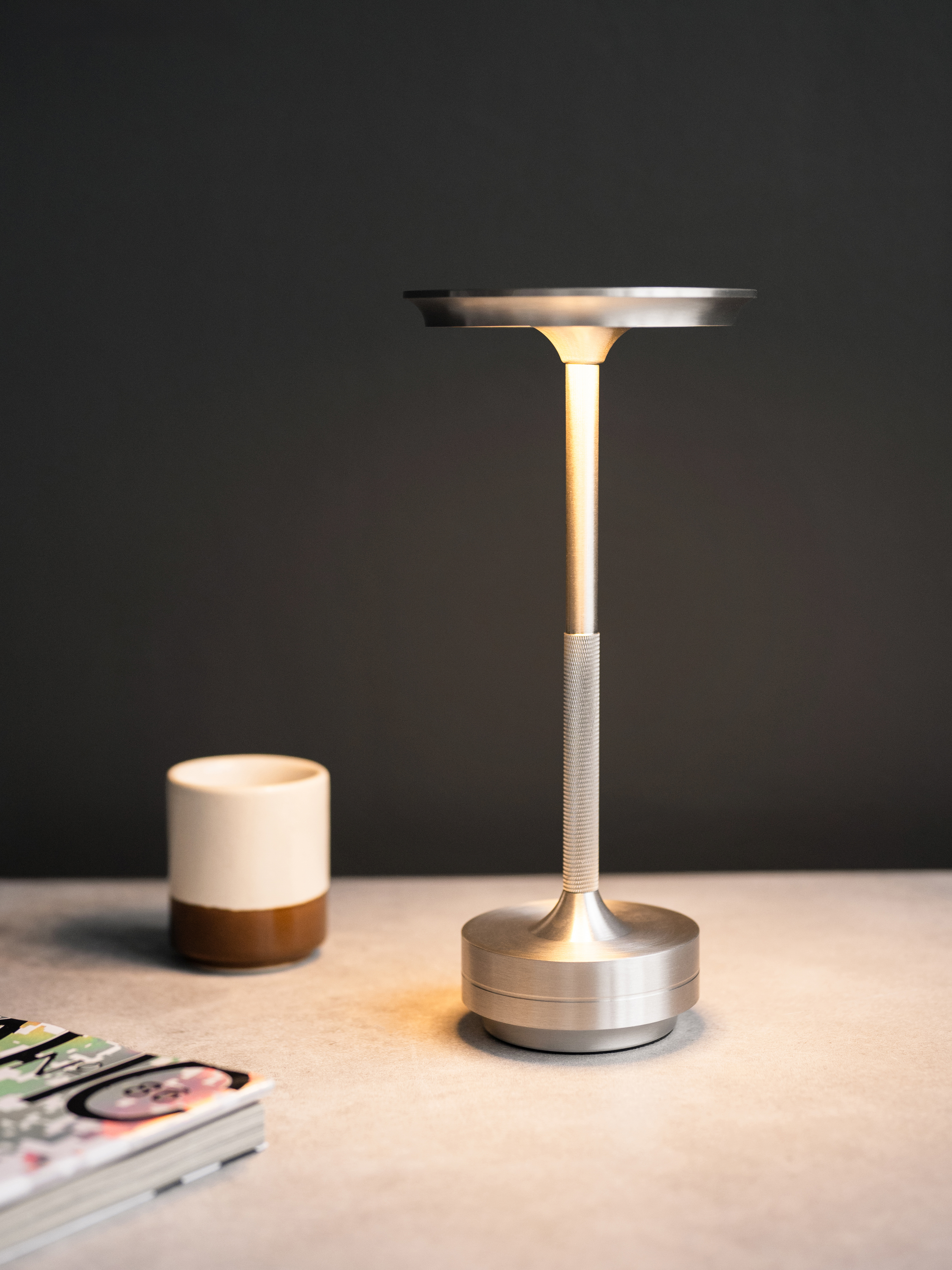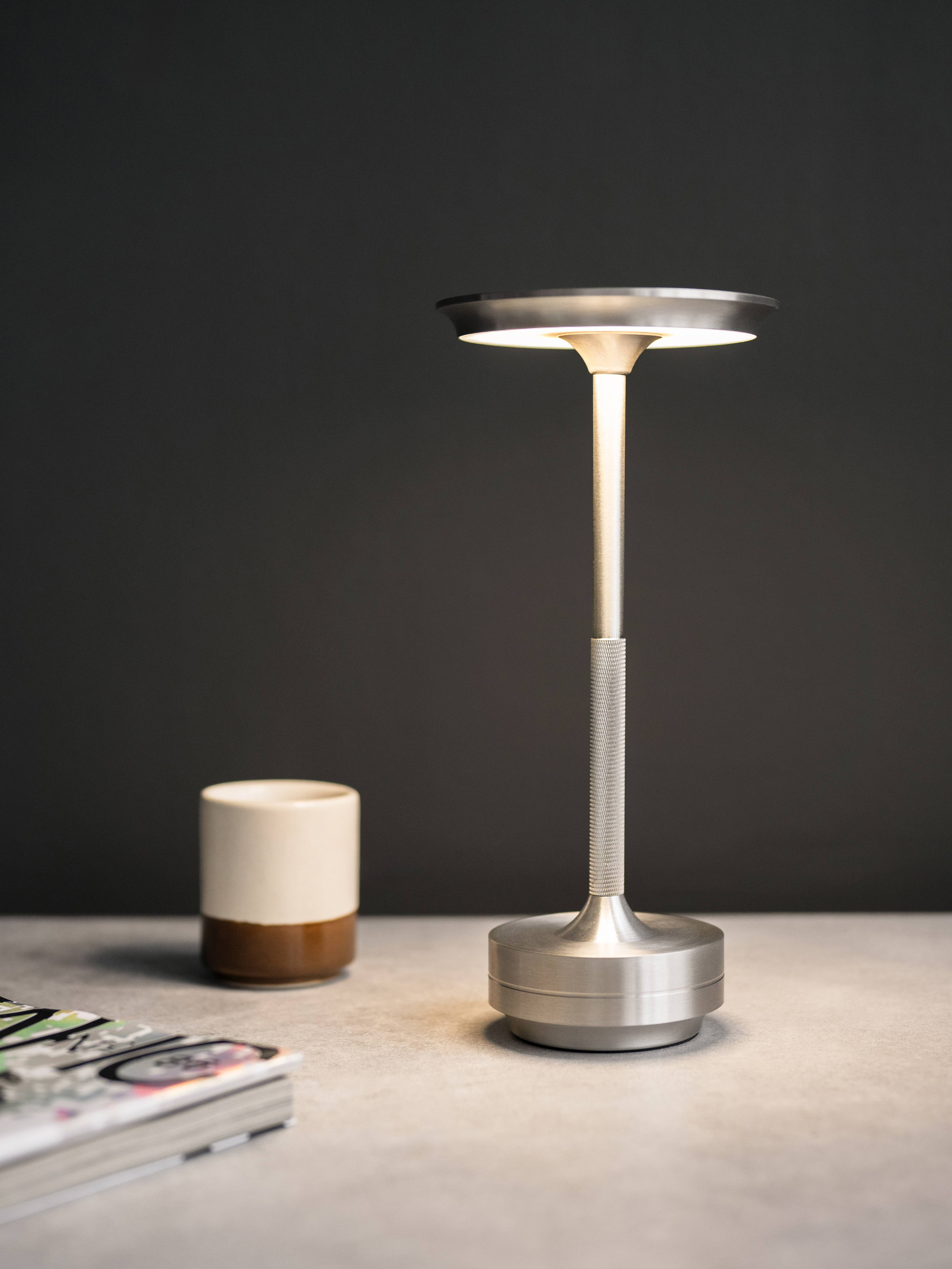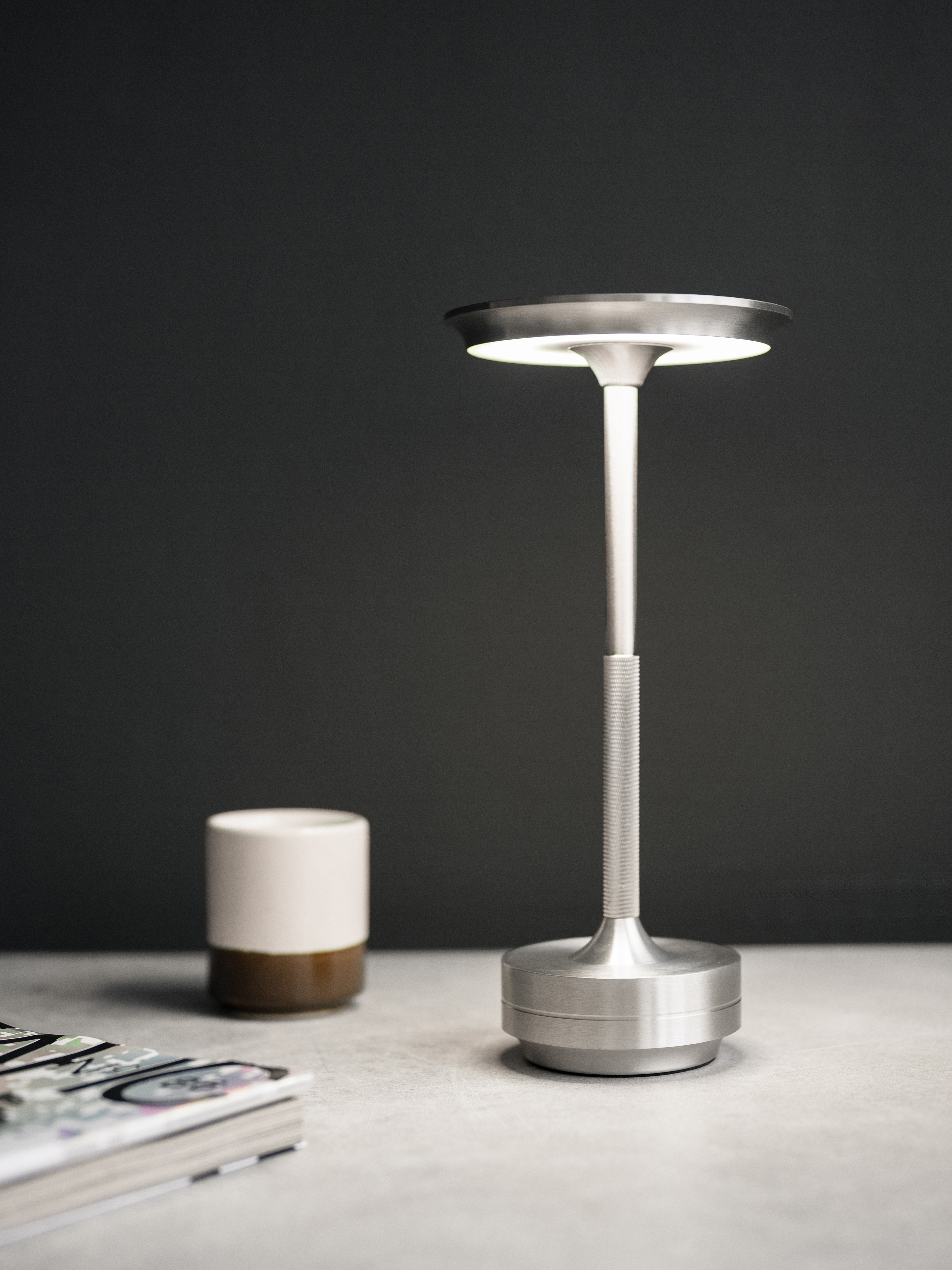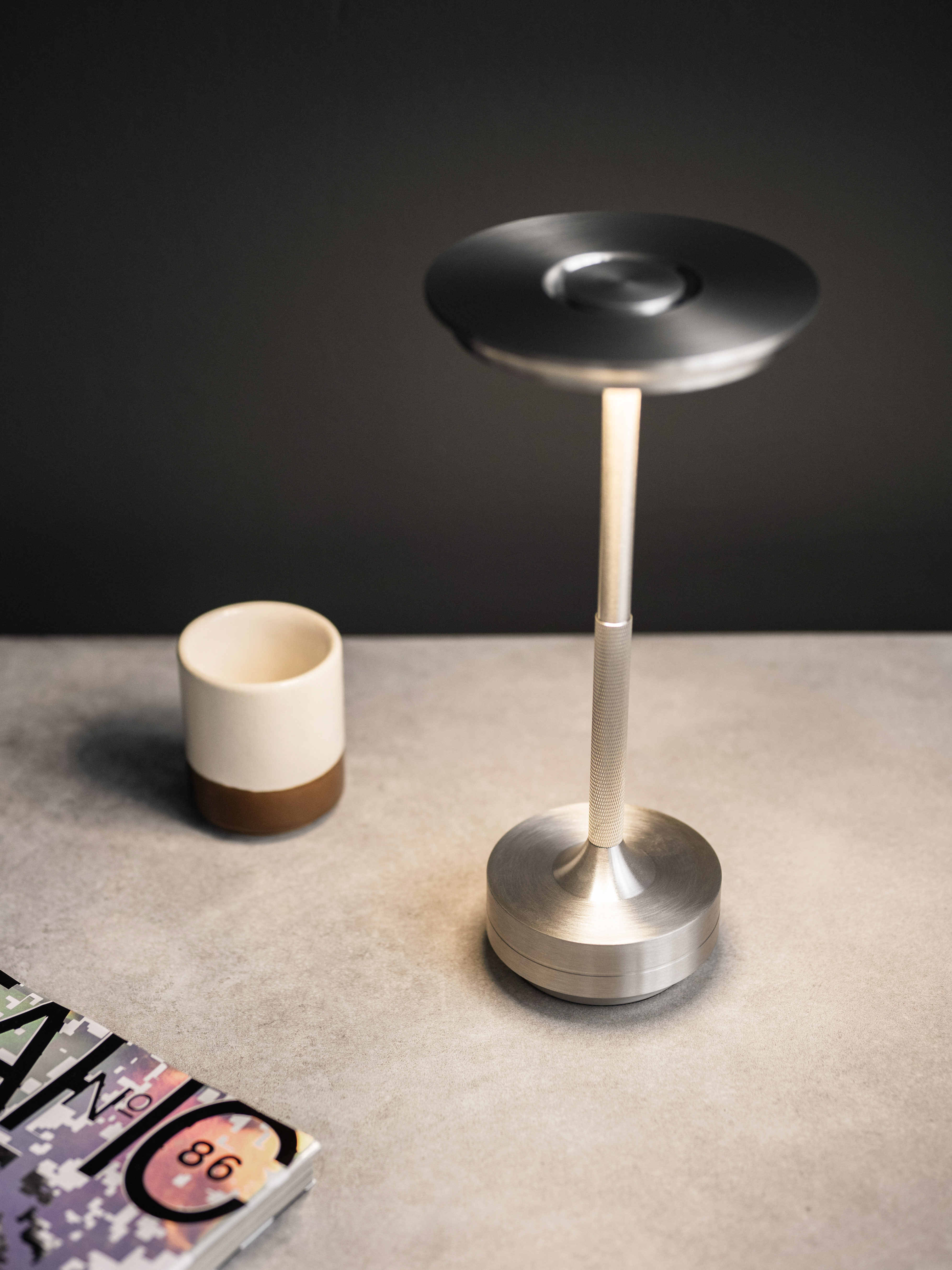 Выполнен из высококачественных материалов, таких как алюминий, что обеспечивает прочность и долговечность изделия. Работает от аккумулятора. Сенсорное управление настольной лампы с регулировкой яркости позволяет легко менять яркость свечения на холодный, теплый и дневной свет.