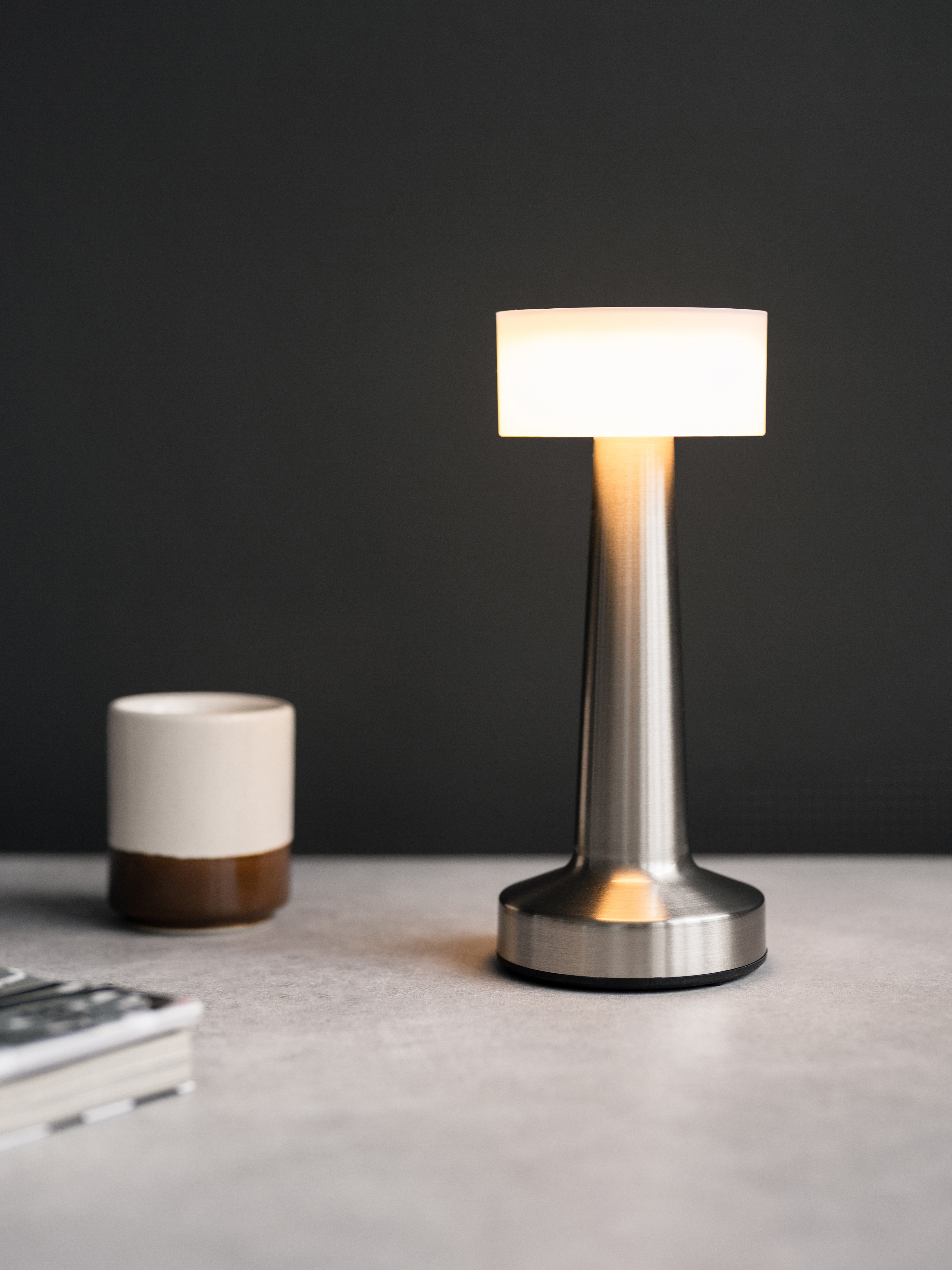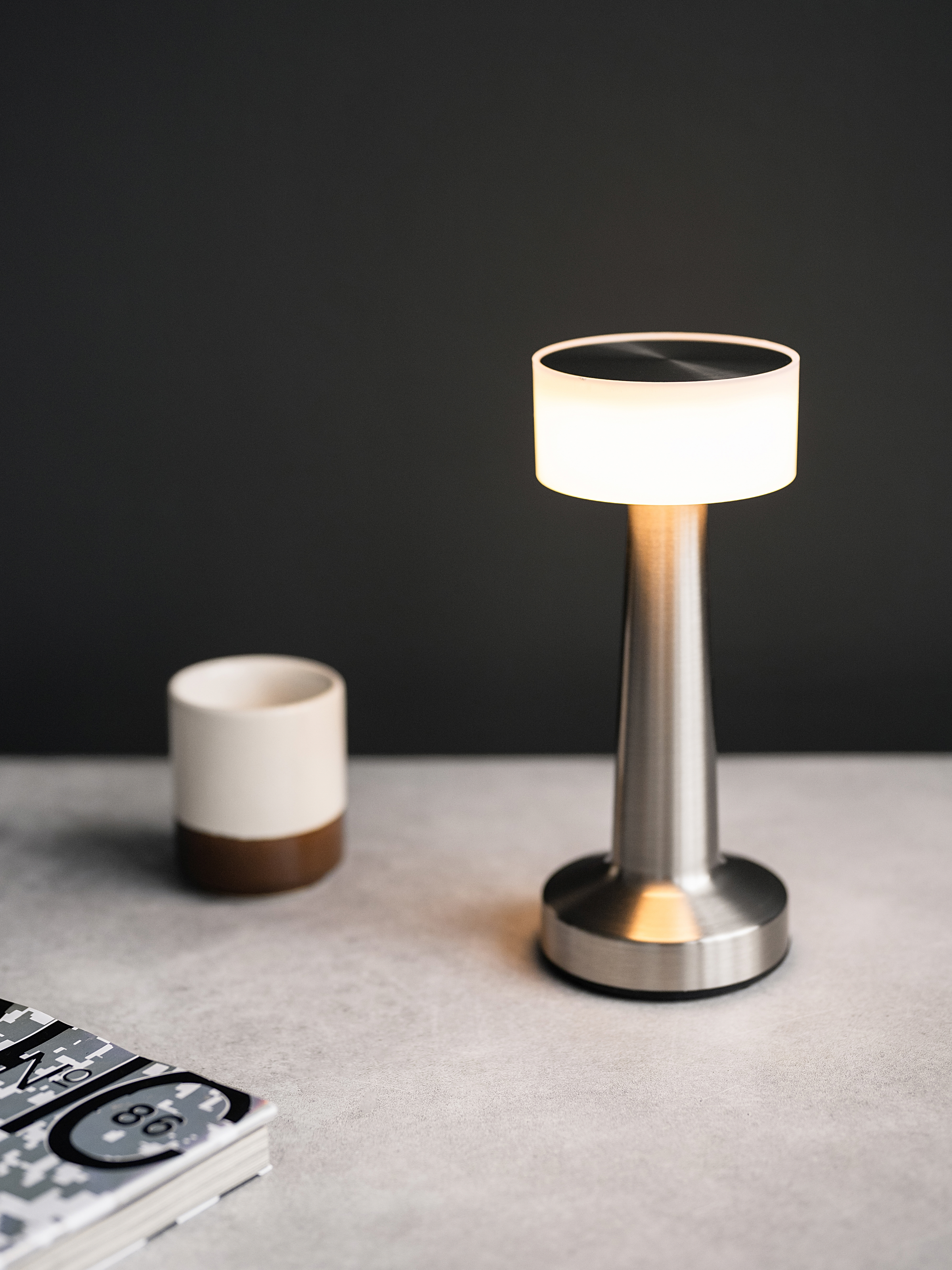 Выполнен из высококачественных материалов, таких как нержавеющая сталь и акрил, что обеспечивает прочность и долговечность изделия. Работает от аккумулятора. Сенсорное управление настольной лампы с регулировкой яркости позволяет легко менять яркость свечения на холодный, теплый и дневной свет.