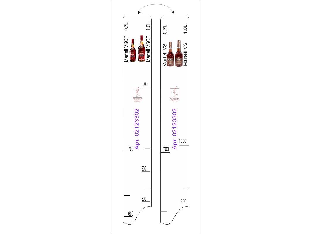 Линейка Martell VS/VSOP (0,7 л./1 л.) L=28 см. В=2 см. /1/