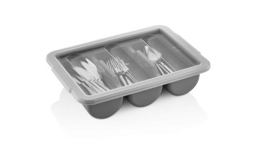 string(498) "Емкость для столовых приборов (40*29*9,5 см) из полипропилена на 3 секции. Удобные ручки обеспечивают надежный хват. Возможность штабелирования экономит место при хранении. Подходит для мытья в посудомоечной машине.