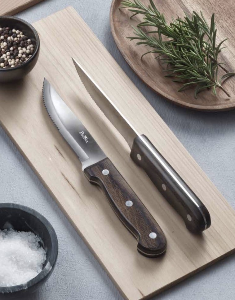 string(845) "Нож для стейка с невероятно острым лезвием, выполненным из высококачественной нержавеющей стали, и удобной нескользящей ручкой с красивой древесной фактурой и надежными клепочными креплениями. Благодаря специальной заточке, нож легко справляется с нарезкой или разделкой продуктов и максимально долго сохраняет первоначальную остроту. Стильный современный дизайн органично вписывается в интерьер любой кухни.