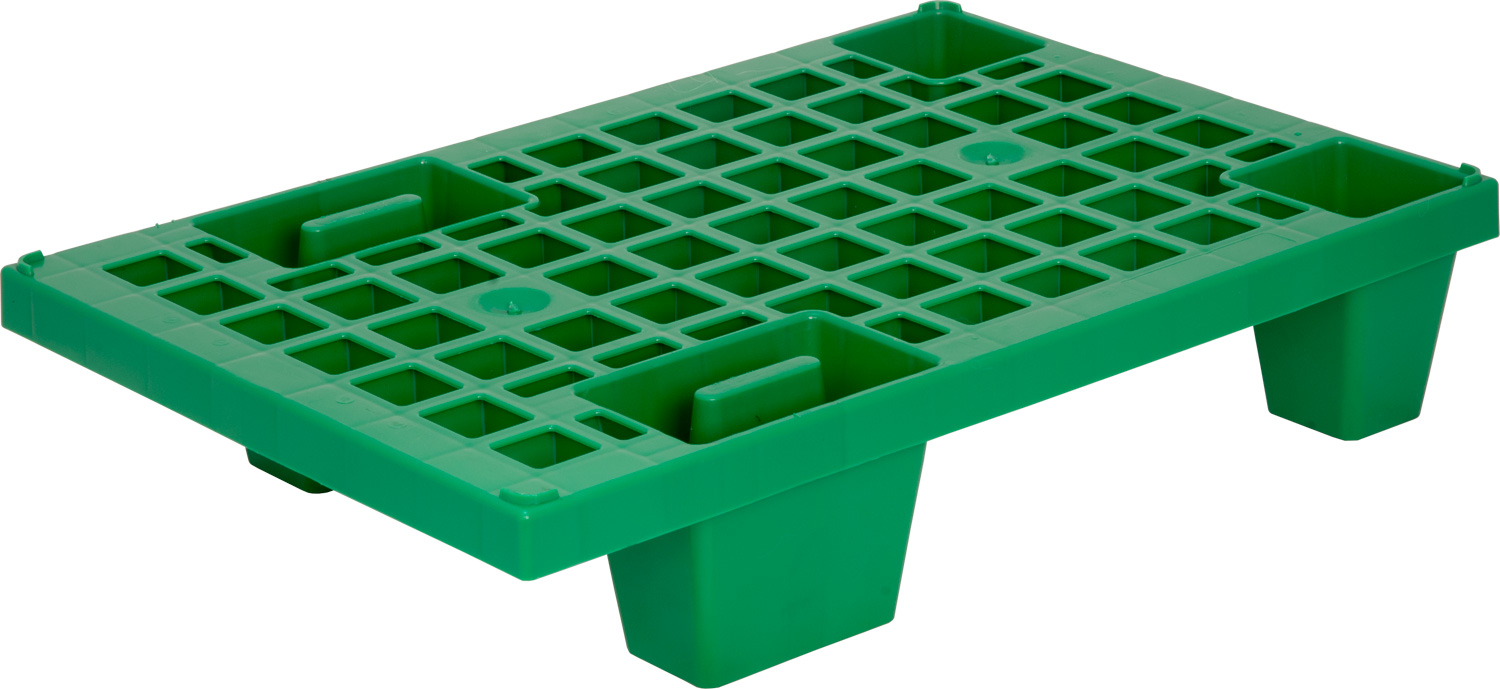 Паллет 600*400*130 мм. перфорированный, на ножках, зеленый /1/50/200/