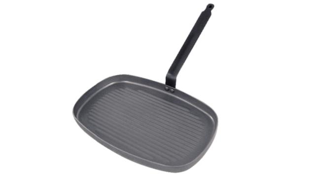 Тяжелая стальная прямоугольная сковорода для гриля идеально подходит для жарки мяса и рыбы, ракообразных.