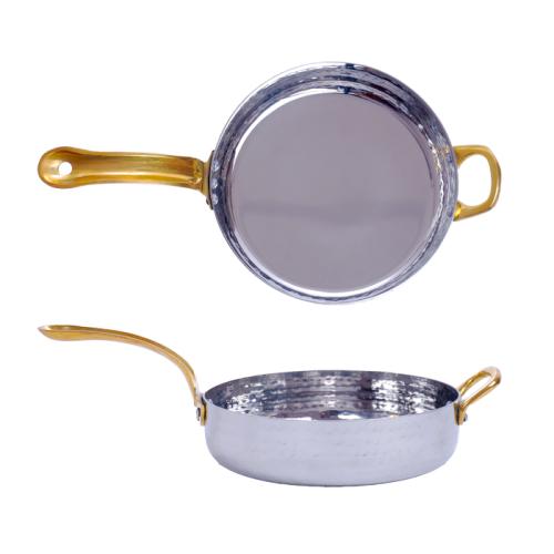 Сковорода порц. d=15,5 см. h=4 см. 0,7 л. нерж. глубокая с 2 ручками латунь MGsteel /1/36/
