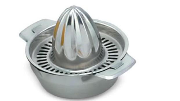 Сквизер представляет собой конус, на который помещается половинка фрукта и путем надавливания выжимается сок, стекающий по желобам в специальную нишу.
