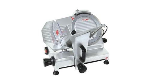 Гастрономическая машина полуавтоматическая, диаметр ножа 220 мм, толщина среза 0.2 - 15 мм, встроенное затачивающее устройство, материал корпуса - алюминий.