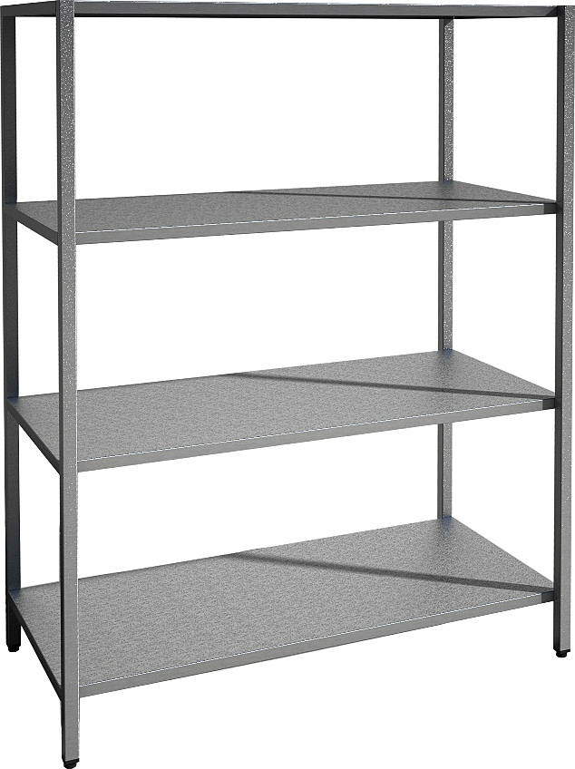 Стеллаж кухонный предназначен для складирования продуктов, посуды, инвентаря. Полностью изготовлен из нержавеющей стали, благодаря чему гарантирует долгий срок службы. Стеллаж имеет разборную конструкцию, стойки стеллажа снабжены регулируемыми опорами из ударопрочного пластика, а полки усиленны С-образным профилем.