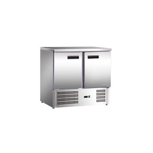 Холодильник-рабочий стол "мини", экономичная версия, +2...+8оС, 260 л, допустимая загрузка 50 кг, 2 дверцы, 2 полки-решетки GN 1/1 с направляющими, столешница без борта, материал корпуса снаружи - нерж.сталь 304/430, внутри - алюминий