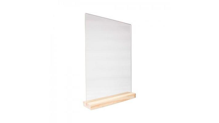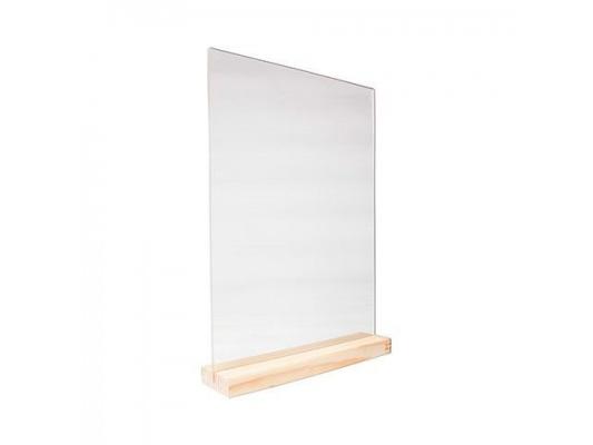 Табличка 105*150 мм. А6 пласт. вертикал. прозрач. тейбл тент на дерев. подставке /1/20/7/14/ АКЦИЯ