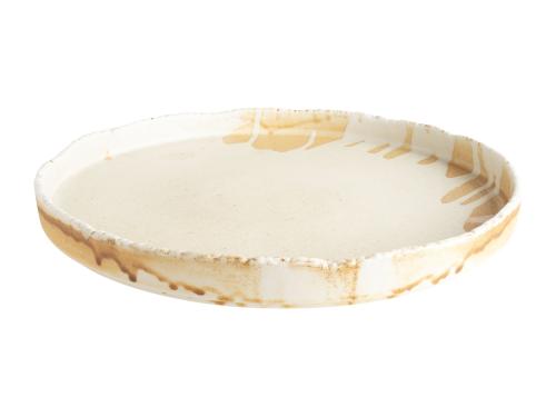 Тарелка белого цвета со сливочным оттенком.