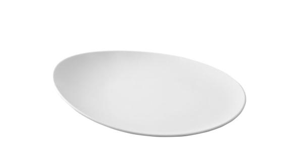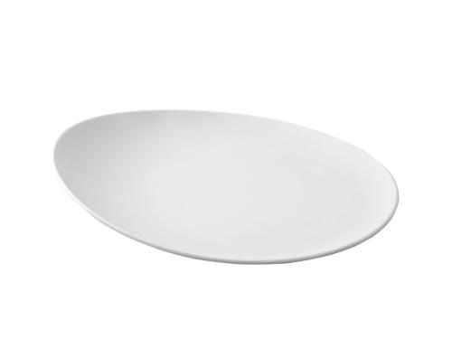 Тарелка белого цвета со сливочным оттенком.